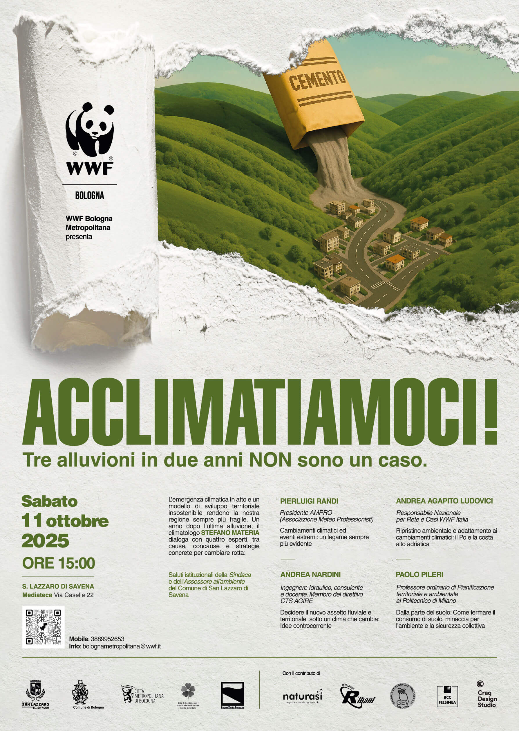 L’emergenza climatica in atto e un modello di sviluppo territoriale insostenibile rendono la nostra regione sempre più fragile. Un anno dopo l’ultima alluvione, il climatologo Stefano Materia dialogherà con quattro esperti (Pierluigi Randi, Andrea Agapito Ludovici, Andrea Nardini, Paolo Pileri) tra cause, concause e strategie per cambiare rotta.