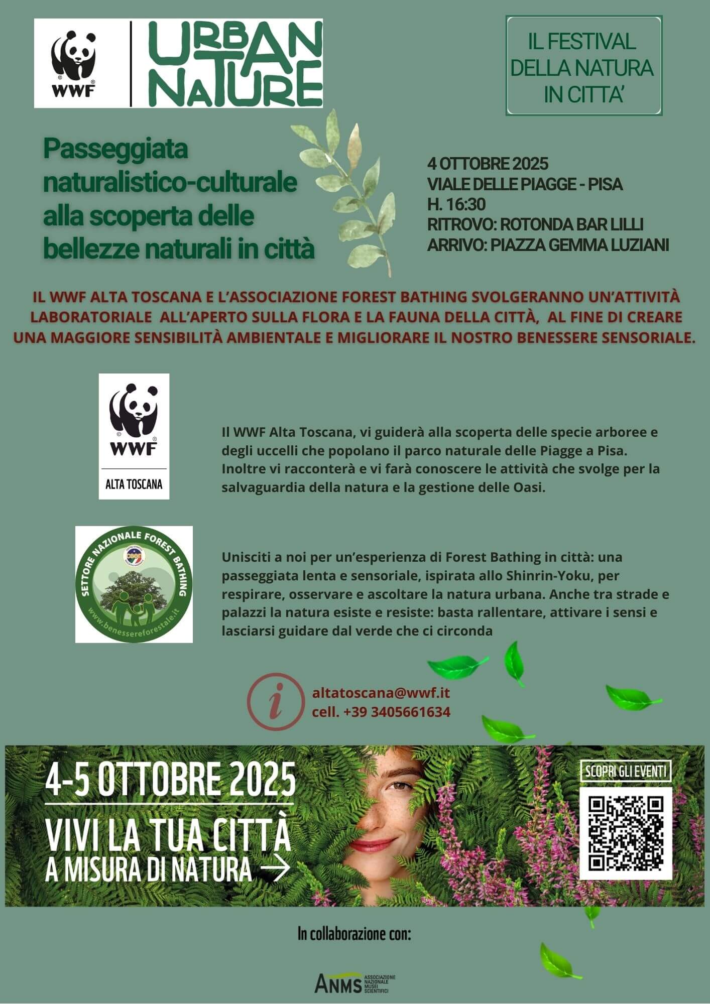 Il WWF Alta Toscana e l’associazione Forest Bathing vi invitano a un’attività laboratoriale all’aperto sulla flora e la fauna della città, al fine di creare una maggiore sensibilità ambientale e migliorare il nostro benessere sensoriale.